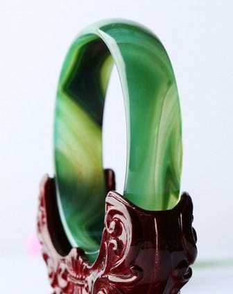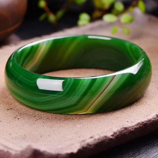 这照片不清晰,看不出细节,大概看,是玛瑙的纹理。应该是绿玛瑙材质的扁条手镯,不是玉髓,品质中档。品种属于缠丝玛瑙类。目前照片上看不出有假。你可以自己简单判断一下,天然玛瑙的硬度都高于玻璃,可以在玻璃上划出痕迹,如果这个手镯可以,基本就是真品。但是这种普通缠丝玛瑙的市场价格不贵,通常就是小几百元成交。花1200元购买,肯定是价格上高了一些。以下图片都是绿玛瑙的手镯,价格都在小几百元,可以对比参考。