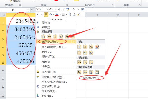 2、选中需要除以10000的单元格,点击鼠标右键并点击选择“选择性粘贴”。