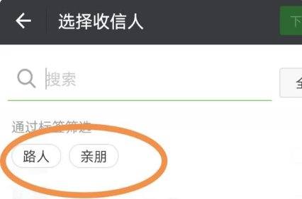 7、即可在选择收信人的页面选择需要发送的联系人标签,点击下一步。
