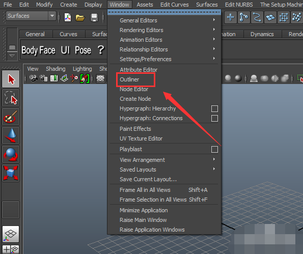 3、点击Windows选项,在其子级菜单哪里找到outline选项