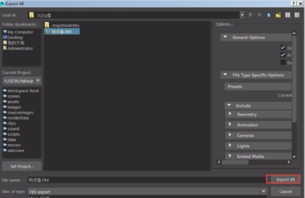 7、同样,C4d文件导入到Maya,点击文件--->导出---fbx即可