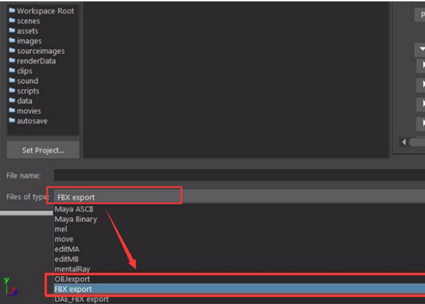 2、稍后打开导出的选项,这里选择文件格式,fbx或者obj都可以,完成后点击export selection: