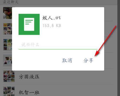 5、选择好友,跳出分享界面;点击分享。