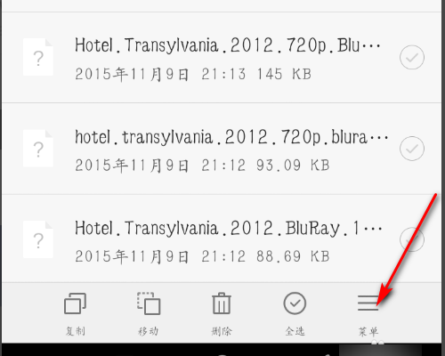 2、长按你要分享的文件;选中的文件后会出现蓝色的小勾;并点右下角菜单。