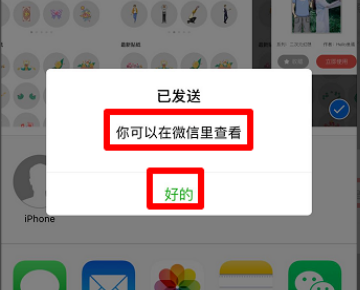 6、发送完后可以在微信里查看,点击“好的”,退出相册即可,如下图所示就完成了。