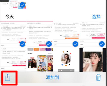 3、点击选择要发送的照片,点击左下角的“分享”图标,如图。