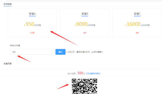 系统支持自定义输入充值金额,或者选择相应的套餐,使用支付宝扫描二维码支付,即可完成相应的充值。