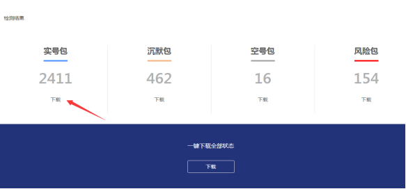 检测完成后会生成四个包,下载实号包即可,针对实号包进行推广,其他三个包为无效推广号码