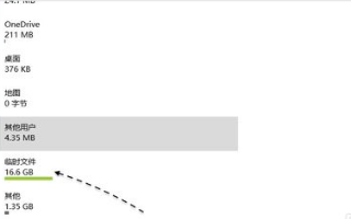 4、接下来可以在这里看到这台电脑目前占用的各种应用的 c 盘, 在底部可以看到大占用的 "临时文件"