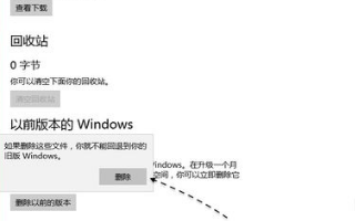 6、如果你确定了以后不会从 Windows10 系统降级的话,那我们可以尝试这里的内容,当然在删除以后也就不能回滚还原了。