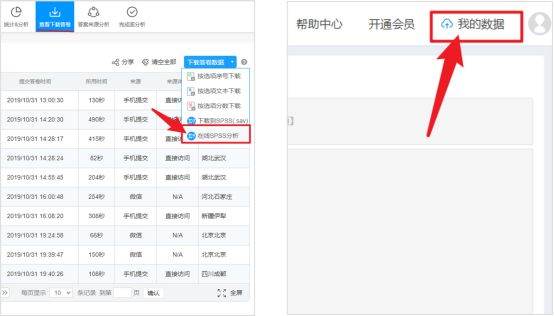 (左:问卷星导入;右:SPSSAU数据上传)