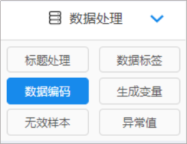 SPSSAU提供了专门的数据处理模块,绝大部分数据处理工作都可以在这里完成。包括标题处理、数据标签、数据编码、生成变量、无效样本、异常值。