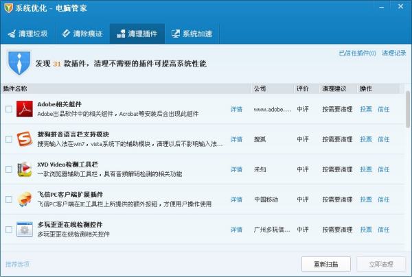 1、检测当前操作系统中的插件安装情况,如果有恶意插件,请直接卸载,以腾讯电脑管家为例