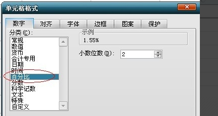 5.在数字分类下选择"百分比",点下面的确定就行了。这样就解决了word如何求百分比的问题了。
