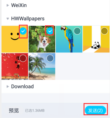四、勾选需要发送的照片,点击右下角“发送”就可以把所选照片发送给该好友。
