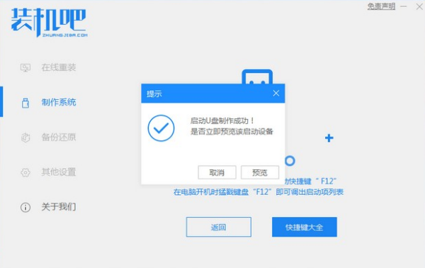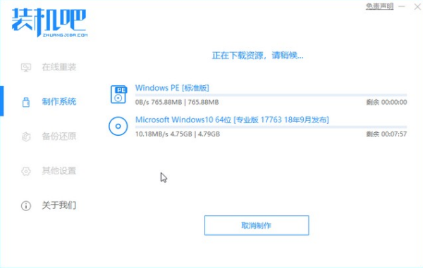 1、浏览器搜索装机吧在线系统重装工具软件并打开,选择制作系统,点击开始制作。
