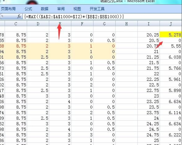 3、在L列输入公式=MAX(($A$2:$A$1000=$K2)*($B$2:$B$1000)),而后同时按住ctrl+shift+enter,将公式转换为数组获得对应的最大值
