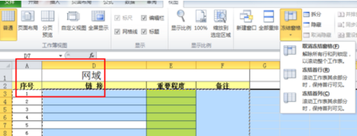选择首行或者首列,但是如果不首行或者首列的话,选择冻结拆封窗口,如图所示