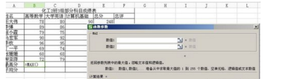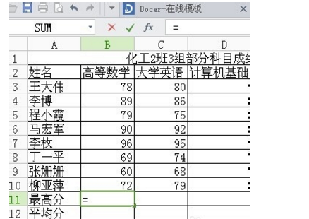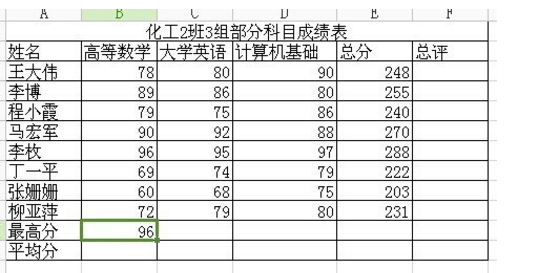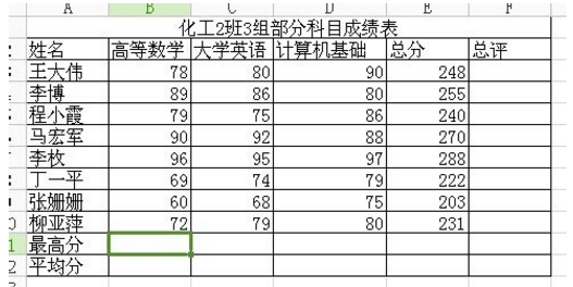 鼠标选中如图中高等数学的最高分单元格,即B11