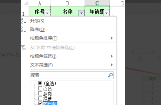 2、现在我们先按名称进行筛选向日葵,如下图进行筛选。