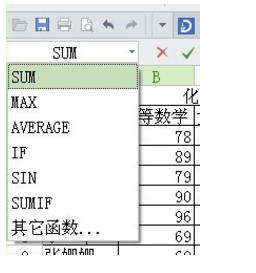 点击图中sum旁边的倒三角,下拉菜单中就会出现如图很多选项,我们要选择的就是Max函数,(如果下拉菜单中没有Max函数,就点击其他函数,然后在弹出的对话框中找到Max函数)