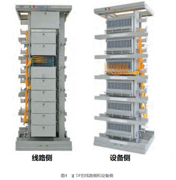 别在于,OMDF的定义里,线路侧连接室外光缆,设备侧连接OLT或者传输设备,可通过跳线调整线序,同时具有敞开性。而ODF连接的是光缆或者光通信设备,线序一般是固定的,只有一侧能够跳线。