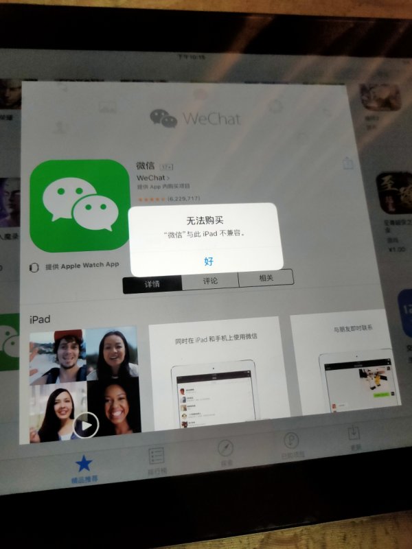 打开App Store----找到已购项目----点击上方不在此i Pad上----找到微信----点击后面的下载----下载时会提示你:是否下载最新兼容版,选下载登录:先选择同时在手机与i Pad上使用, 如果提示:版本不是最新,需要更新,一定一定不要去更新,点击取消,选择仅在i Pad上登录。登录成功后再退出, 重新选择:i Pad和手机同时登录即可。能用的时候显示更新,就先不要去更新。【回答】