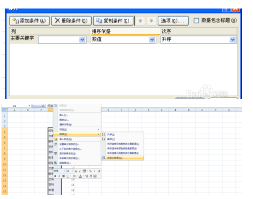 步骤二:选中excel中的文字内容,然后右键单击鼠标,就能看到排序选项了,点击了排序之后选择最下端的自定义排序,就弹出了一个新的窗口。