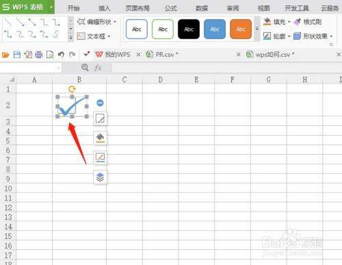 在形状的下拉菜单中选择勾。