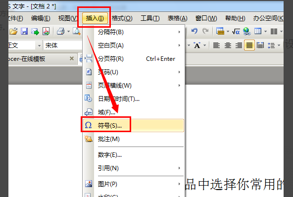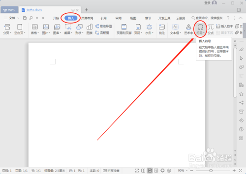 首先,用WPS文字打开需要在方框中打勾√(或打叉×)的Word文档。然后点击菜单栏的“插入”;之后再点击“符号”选项。