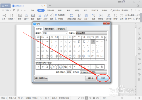 点击插入按钮后,符号窗口不会自动关闭,需要点击插入边上的“关闭”按钮来关闭窗口。