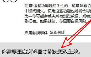 6、这时就会在edge浏览器页面中看到需要重新启动浏览器后使设置生效的提示信息。待浏览器重新启动后,就可以使用edge浏览器的兼容模式了。