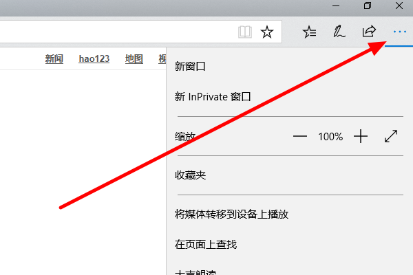 2、点击浏览器右上角,打开更多功能页面;