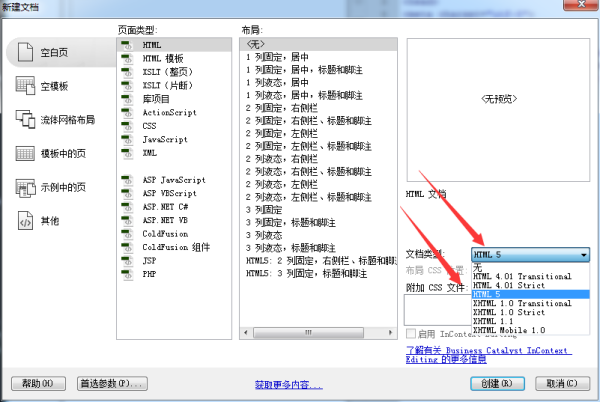 页头要有声明,如xhtml或html5,可以直接复制代码,或如下图创建文件时声明文档类型。