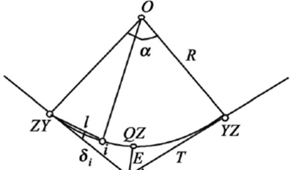 ZY——直圆点;即直线与圆曲线的分界点;QZ——曲中点,即圆曲线的中点;YZ——圆直点,即圆曲线与直线的分界点。