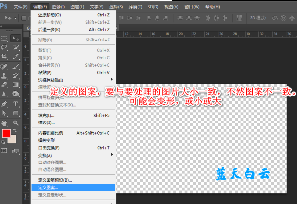 3、图片水印的话,对图片进行抠图,画布设置与要添加水印图片相同大小。将图片水印移动到要添加的位置。点击编辑--定义图案。