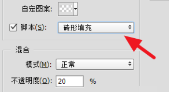 7、脚本选择【砖型填充】,同时可以设置图案的不透明度,默认是20%,数值越高,越不透明