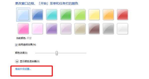 3、窗口颜色页面点击【高级外观设置】打开;