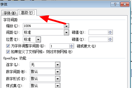 4、然后点击打开“高级”,设置字符间距等设置,回车确定即可。