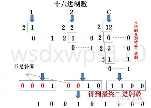 方法为:与二进制转八进制方法近似,八进制是取三合一,十六进制是取四合一。(注意事项,4位二进制转成十六进制是从右到左开始转换,不足时补0)。