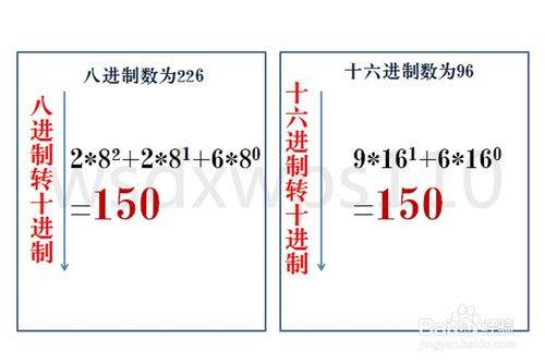 方法为:把八进制、十六进制数按权展开、相加即得十进制数。