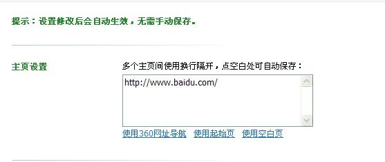 在360右上角有个“工具(T)”然后点击下拉菜单里的“360安全浏览器选项”设置为www.baidu.com就OK了。