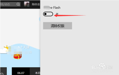 在点击上图中的网址之后,即可进入该页面中的权限管理界面中,点击如图所示位置中的 开关位置,将其打开即可开启该网页中的flash插件。
