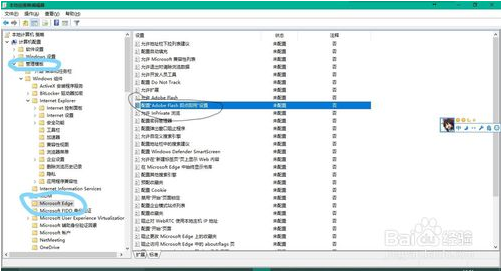 依次展开‘管理模版’-‘Windows组件’,并选中‘Microsoft Edge’,在右侧找到并双击‘配置“Adobe Flash 即点即用”设置’