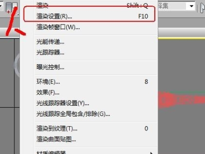 1、点击渲染菜单栏下的渲染设置或者点击图中2处进入渲染设置。
