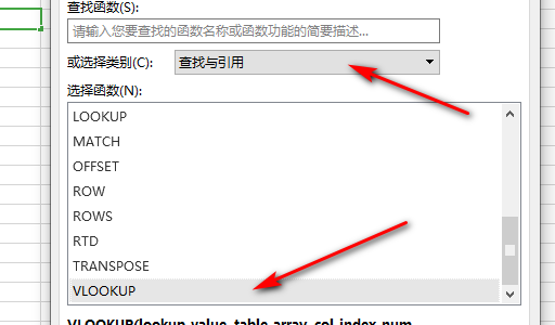 4、选择VLOOKUP函数