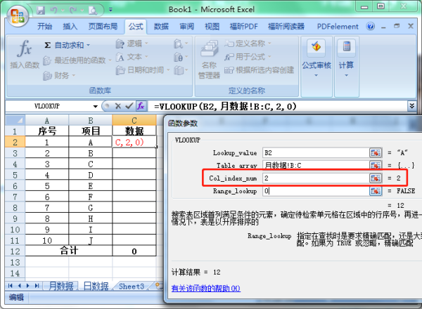 5、函数第一行选择作为对应条件的数据,这里选取所对应的项目