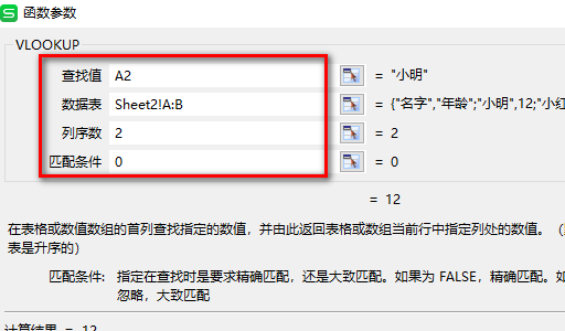 5、进入VLOOKUP函数页面,查找值选择小明所在的单元格,数据表选择表格2中的所有数据,列序表选择2,因为年龄在表格2中排在第2列,匹配条件填0就可以了,然后点击确定。