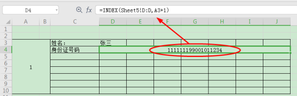 D4公式=INDEX(Sheet5!D:D,A3+1)
