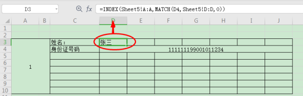 D3公式=INDEX(Sheet5!A:A,MATCH(D4,Sheet5!D:D,0))